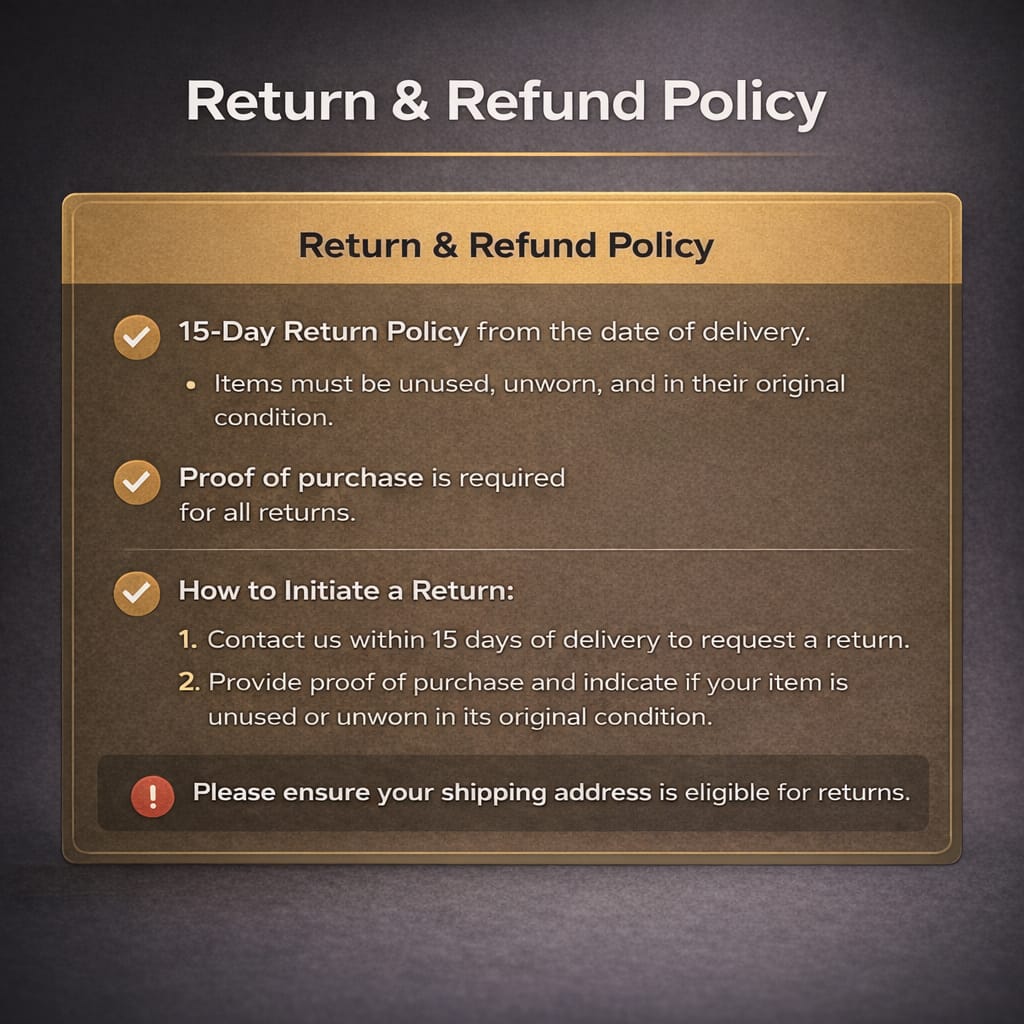 If your item arrives damaged or incorrect, please contact us within 48 hours of delivery. We will arrange a replacement at no additional cost.