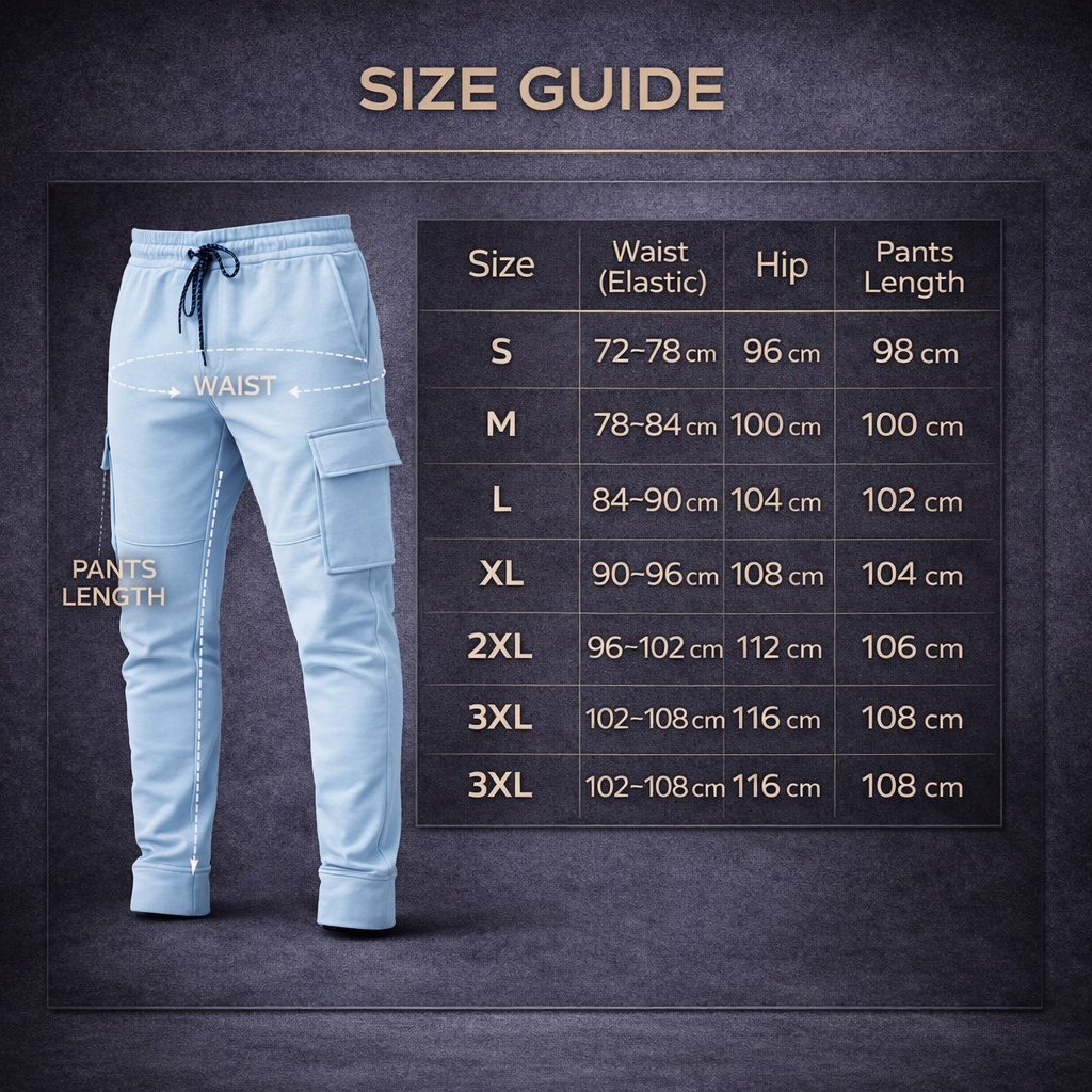 | Size | Waist (Elastic) | Hip | Pants Length |