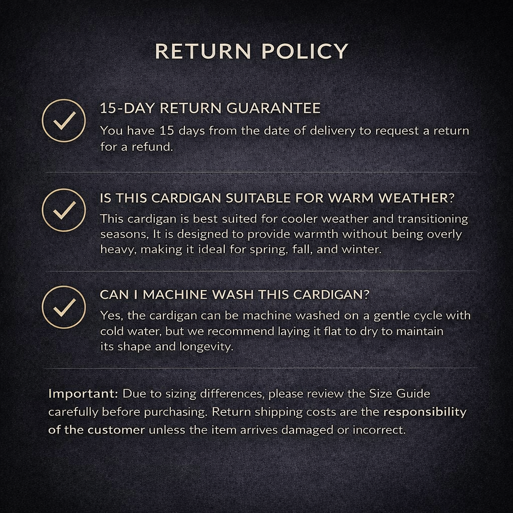 Due to sizing differences, please review the Size Guide carefully before purchasing. Return shipping costs are the responsibility of the customer unless the item arrives damaged or incorrect.