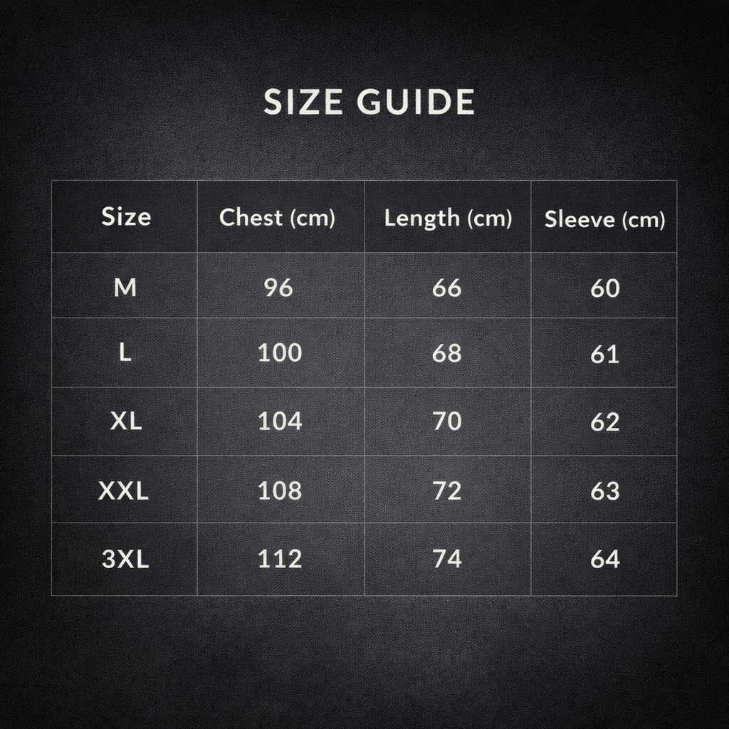| Size | Chest | Length | Sleeve |